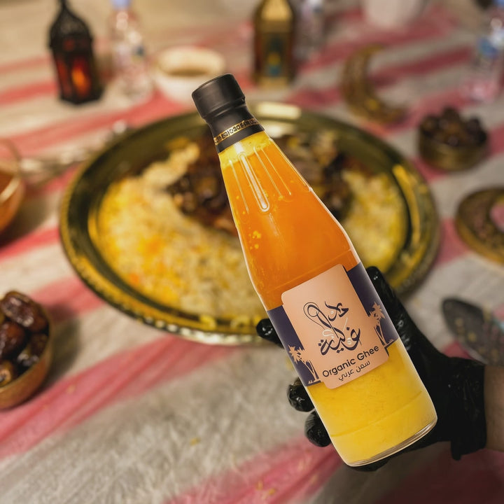 سمن بقري له مذاق تراثي ونكهة ورائحة فريدة. يمكن استخدامه لاعداد اطباق مختلفة بنكة عربية. زبدة محضرة من حليب البقر.سمن خالي من الغلوتين ويوفر دهونا صحية.